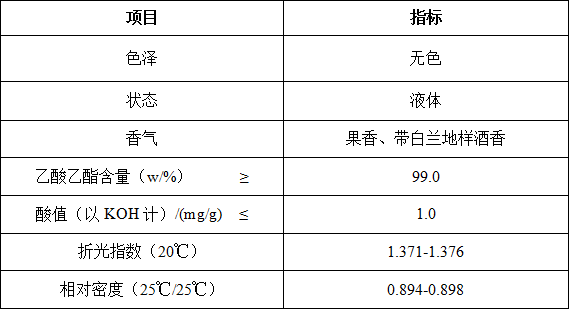 2、在白酒中,為清香型的主體香,其含量可高達2326mg/kg;在濃香型白酒中其含量在1000-1500mg/kg之間。其嗅感和味感在50% (V/V)脫臭乙醇中,1000mg/L時似醚香、果香,味辣、澀;100mg/L時略有醚樣、有淡的果香。